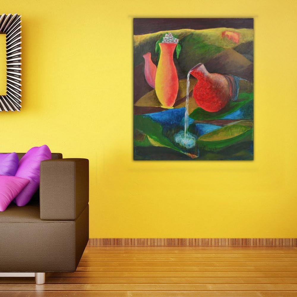 999Store acrylic painting Unframed canvas flower pot with water jug painting still life Indian original art work: Amazon.co.uk: Kitchen & Home